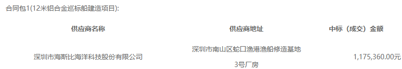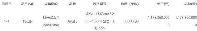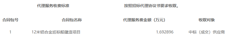 合同包1(12米鋁合金巡標船建造項目):