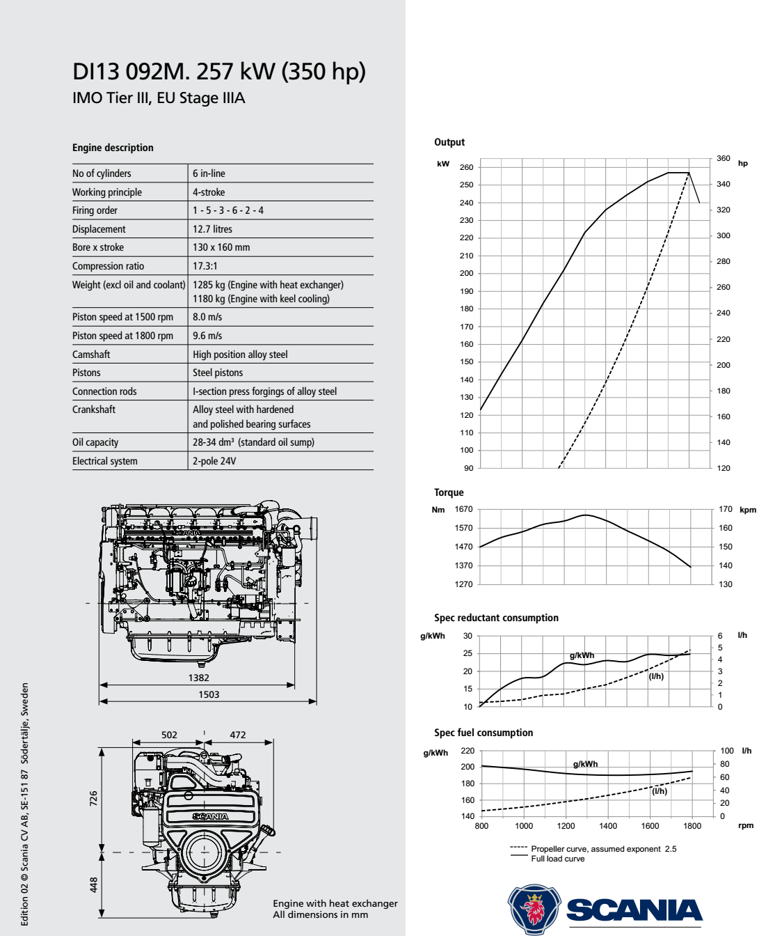 | 螺旋槳曲軸總輸出功率: | 93~257kw/127~350hp(1200~1800rpm) | 扭矩: | 1363~1608Nm(1200~1800rpm) |