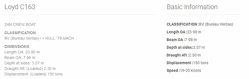 型寬: 7.98m 吃水深度: 2.30m