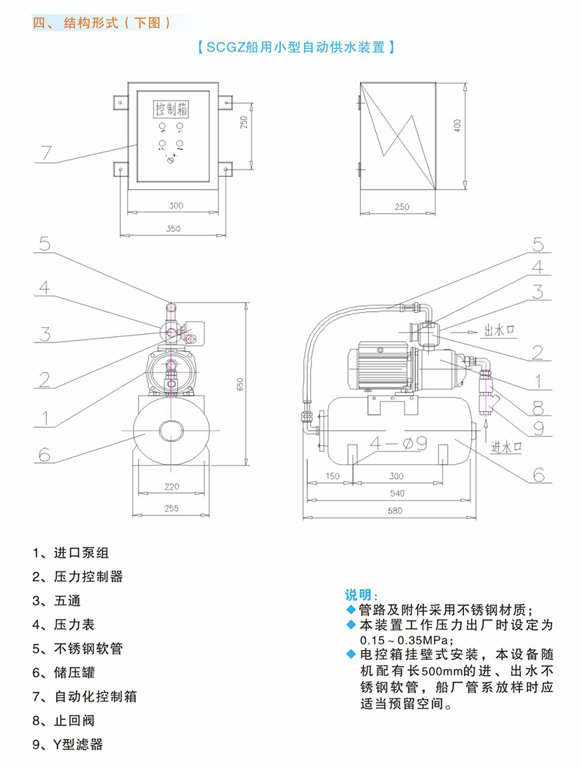 輸入電源: 3Φ380V 50Hz 接口尺寸: 進DN50 出DN40