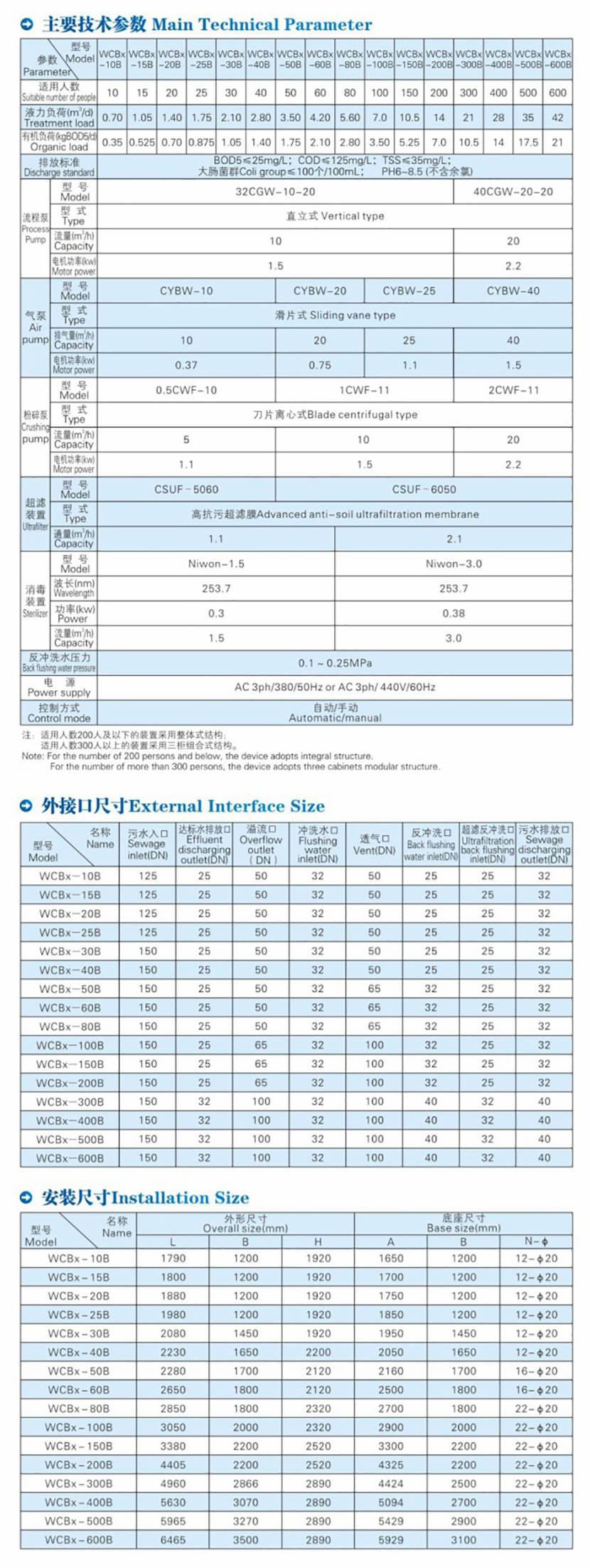 控制方式: 自動/手動 排放指標: BOD5≤25mg/L;COD≤125mg/L;TSS≤35mg/L;大腸菌群≤100個/100mL;PH6~8.5(不含余氯)