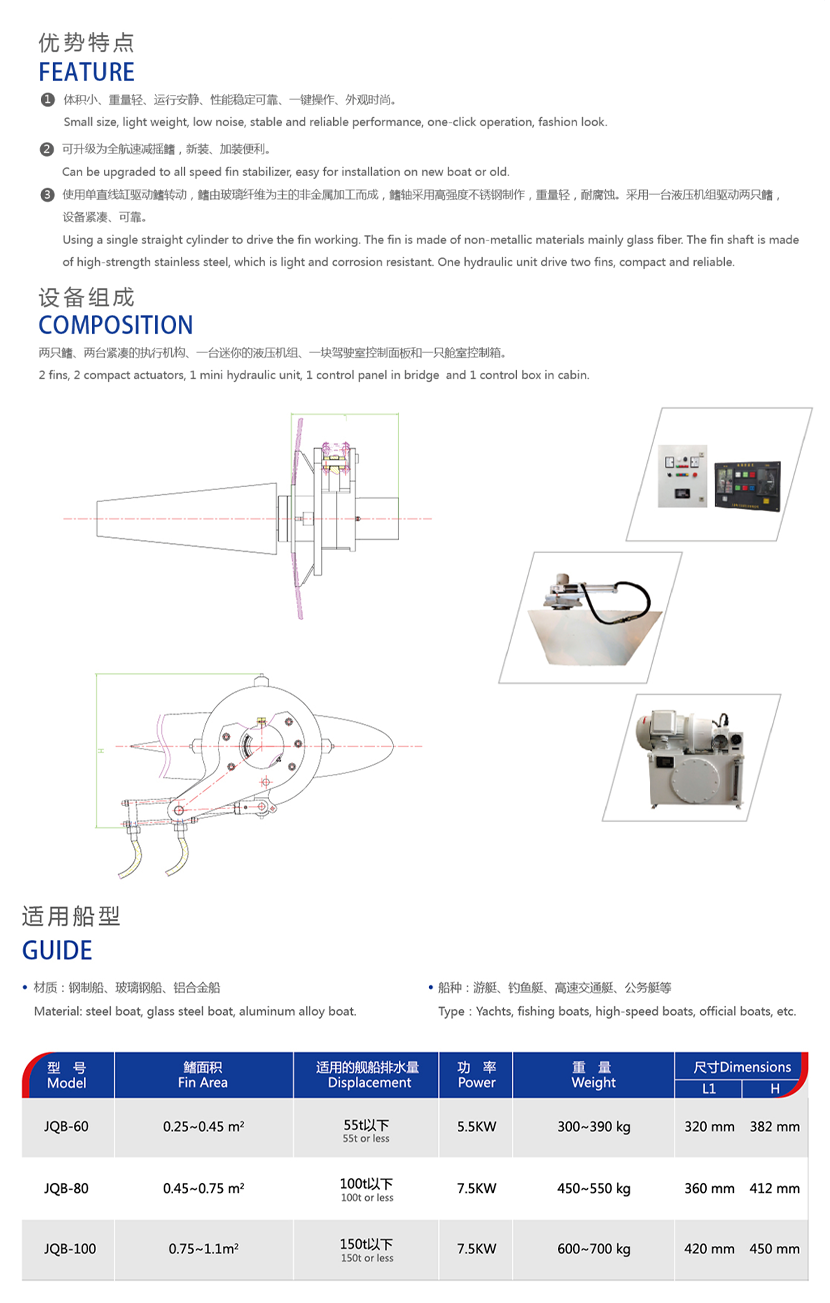 | 鰭面積: | 0.75~1.1m2 | 艦船排水量: | 150t以下 |