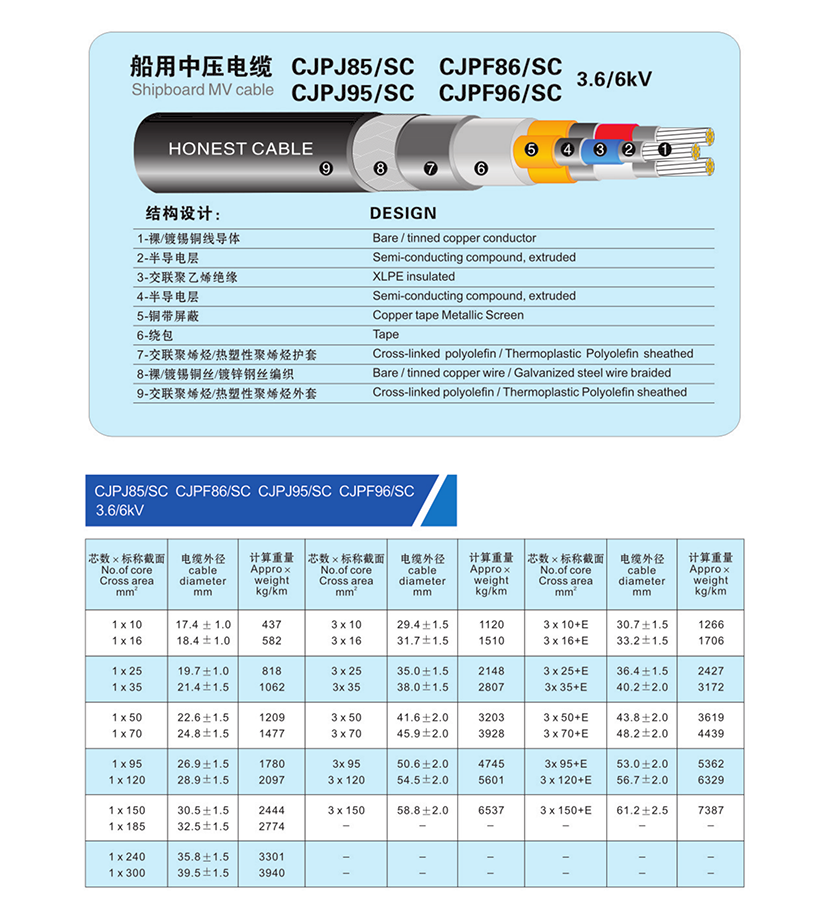 | 類型: | 船用中壓電纜 | 名義直徑: | 39.5±1.5mm |