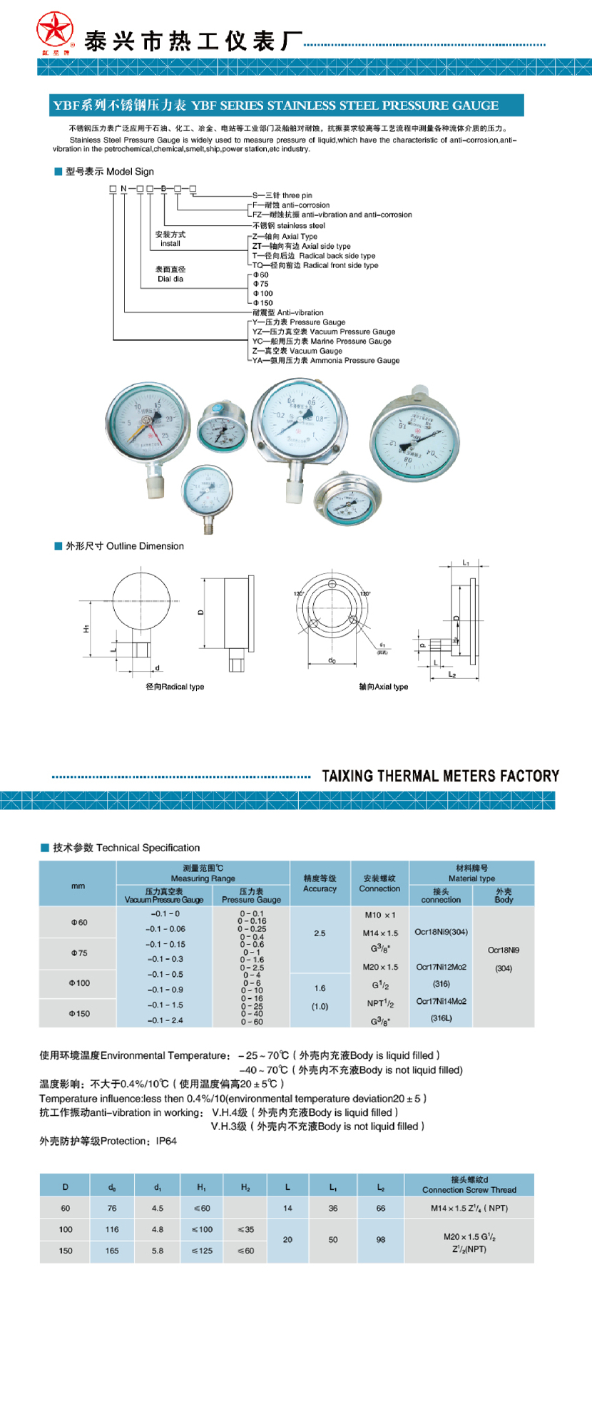 | YBF系列不銹鋼壓力表 | |||