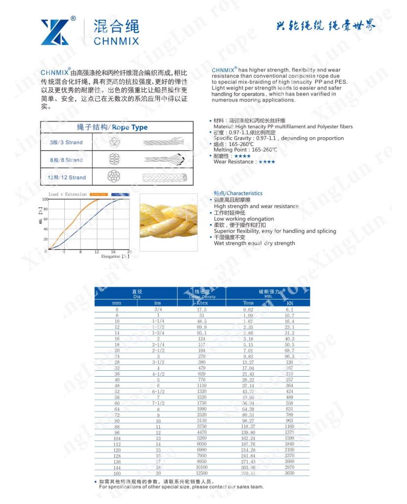 尼龍單絲復(fù)絲混合纜繩