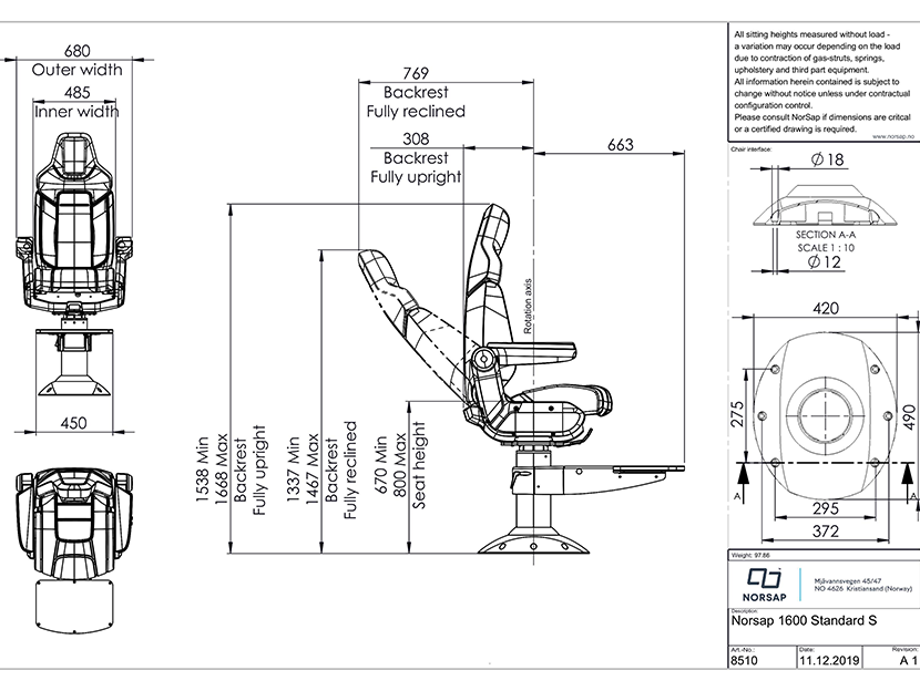 扶手加裝附件: 支持 更多亮點: The Norsap 1600 Standard is a robust and comfortable range – perfectly suited for demanding environments, compact in size and easy to install.